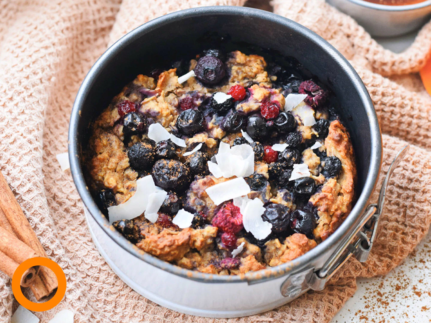 Avena cotta con mirtilli, noci e scaglie di cocco