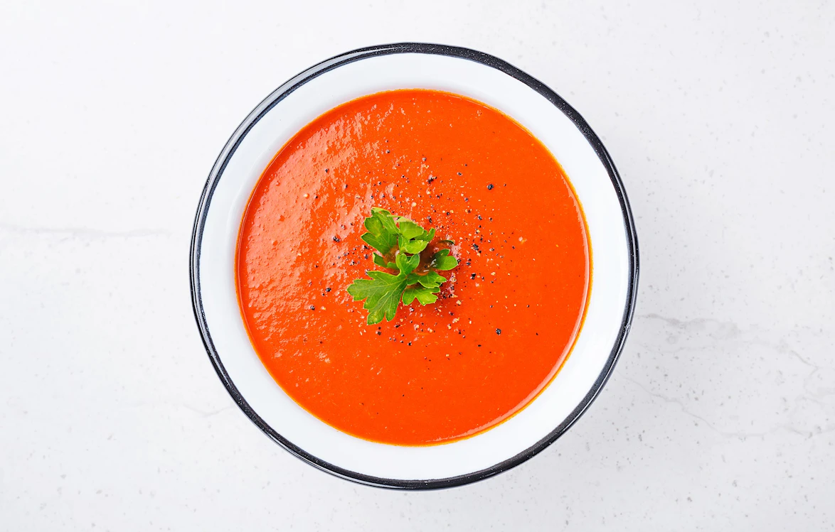 Zuppa di pomodoro è una vera classica olandese. Puoi scaldare una lattina di Unox, ma è ovviamente molto più gustoso farlo da te. Ed è anche molto più salutare. Specialmente se aggiungi il green juice di Orangefit. In questo modo, soddisferai subito una grande parte del tuo fabbisogno giornaliero di vitamine.