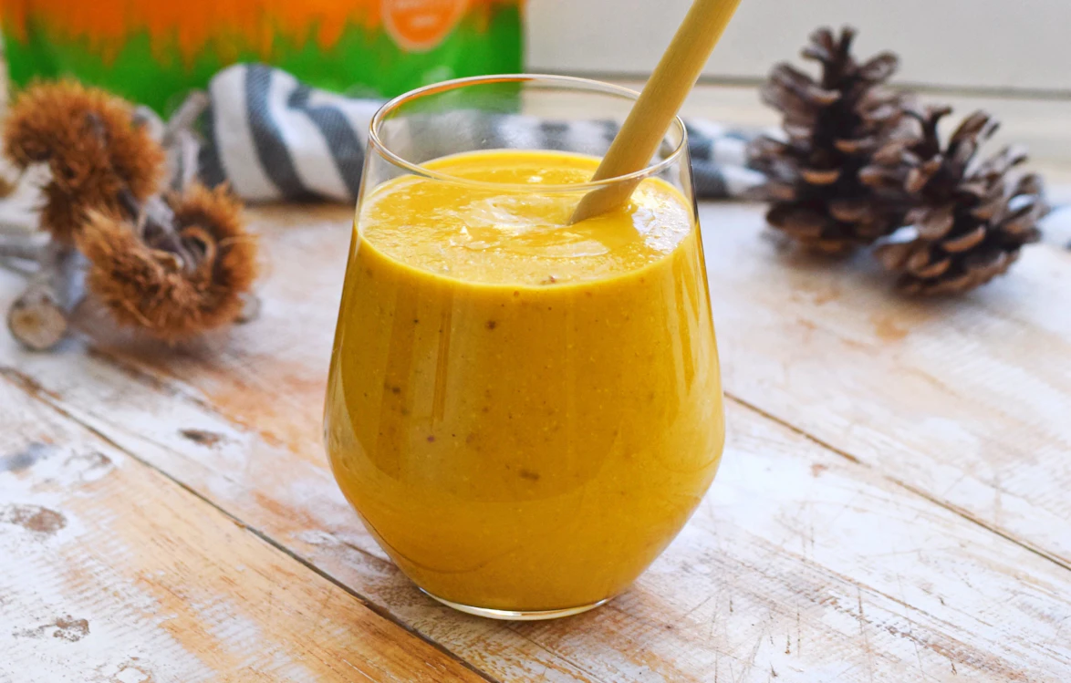 Inizia la giornata con uno smoothie! Questo smoothie alla zucca è perfetto per questa stagione dell'anno. Il suo bel colore arancione si abbina perfettamente ai bei colori all'esterno.