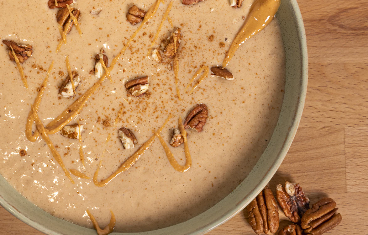 Questa smoothie bowl, con la sua consistenza cremosa, note di cannella e tonalità nevose, si abbina perfettamente al tuo stato d'animo in questa stagione. E la cosa bella: non ti costa alcun punto di piacere colpevole ❄️🧣