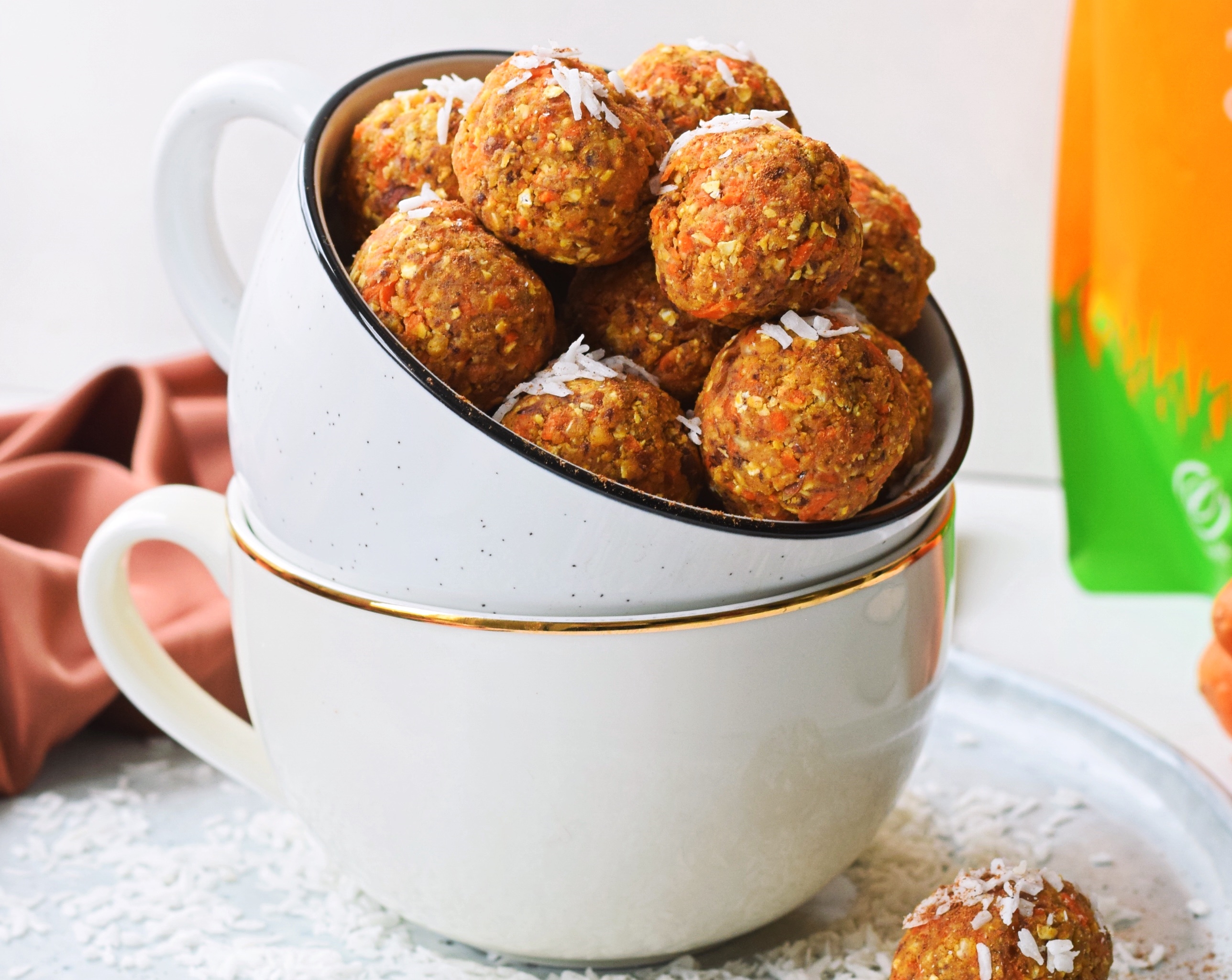 Sei appassionato/a delle palline energetiche, conosciute anche come bliss balls? Anche noi! Per questo motivo sul nostro sito troverai diversi ricette. Questo snack salutare e ricco di proteine è della dimensione perfetta e ideale da portare in ufficio, a scuola o in palestra. Una pallina energetica alla torta di carote ti fornirà un extra di energia e contiene nutrienti preziosi. Dai un'occhiata alla ricetta subito.