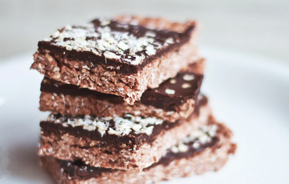Viziati questo weekend con questi deliziosi quadrati di fudge al cioccolato e avena di Orangefit.